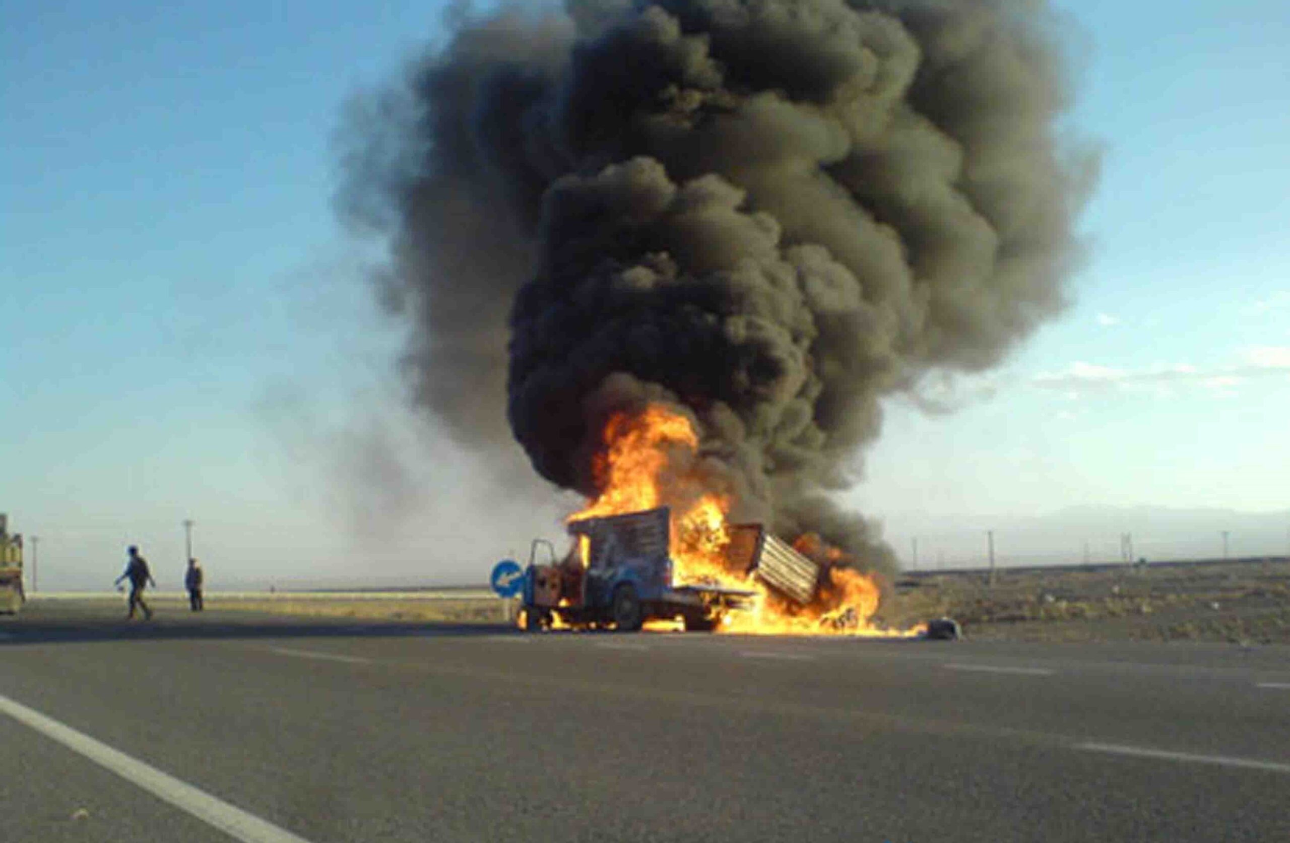 وی افزود: باتوجه به گزارش های مردمی مبنی بر انفجار و آتش گرفتن یکی از خودروها، بلافاصله تیم های امدادی اورژانس، هلال احمر، آتش نشانی به محل حادثه اعزام گردیدند و متأسفانه، راننده وانت نیسان به دلیل شدت مکانیسم حادثه دچار حریق شده و بر اثر سوختگی و جراحات وارده در صحنه حادثه فوت و دو تن از سرنشینان کامیون تریلی مصدوم شدند.