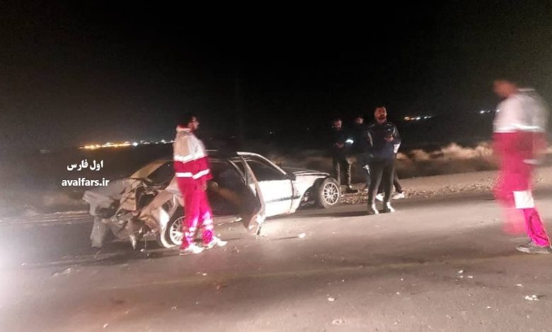 خودرو پارس پس از واژگونی در جاده لامرد به خنج+عکس