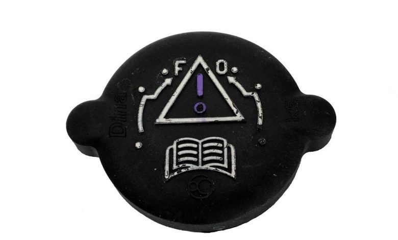 - دو علامت فلش: هنگام بسته شدن درب رادیاتور، این دو فلش باید به سمت خودرو باشند. پس این دو فلش جهت چرخش و بسته بودن درب رادیاتور را یادآوری میکنند.