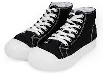 این تصویر شامل یک جفت کفش ، یک پسر و دو همبرگر است.