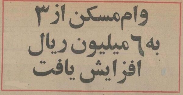 ۵۰ سال پیش رقم دریافتی وام مسکن از ۳۰۰ هزار تومان به ۶۰۰ هزار تومان رسید.