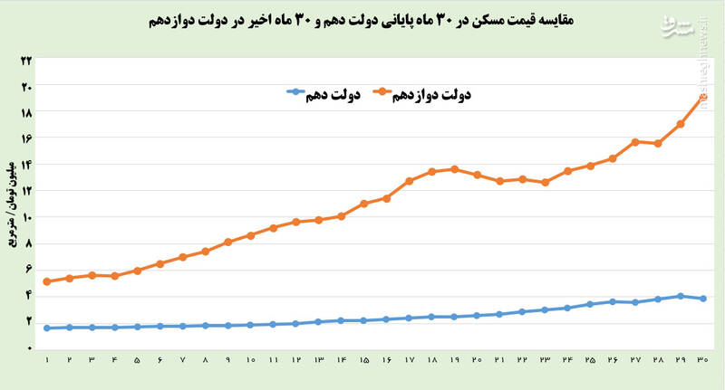 اما امروز در دولت آقای روحانی، قیمت دلار بالاتر از ۲۲ هزار تومان و سکه تمام بیش از ۱۰ میلیون تومان شده است یعنی در این دوره قیمت دلار نزدیک به ۷ برابر شده است. قیمت مسکن در تهران هم به ۱۹ میلیون تومان رسیده است. قیمت خودروها نیز چندین برابر نرخ آنها در پایان دولت دهم شده است. قیمت کالاهای اساسی هم افسار بریده و از مواد غذایی تا لوازم خانگی و موبایل، به طور هفتگی، روزانه و حتی ساعتی بالا می‌رود.