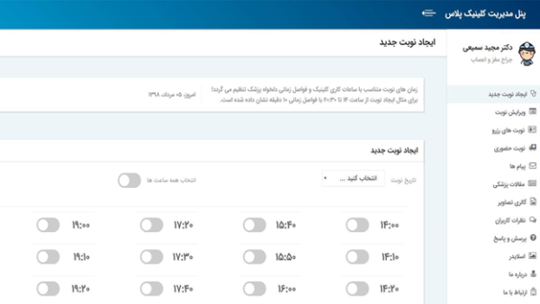 ویژگیهای هوشمند سامانه نوبت دهی اینترنتی پزشکان شیراز