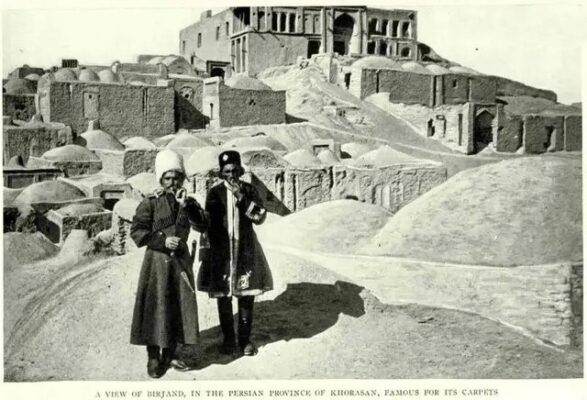 در اینجا عکسی مربوط به دوران حکومت ناصرالدین شاه را ملاحظه میکنید که یک شخص نظامی و یک شخص دیگر را (که با توجه به لباسش احتمالا مقام حکومتی است) در حال سیگار کشیدن روی پشتبامی در شهر بیرجند نشان میدهد.