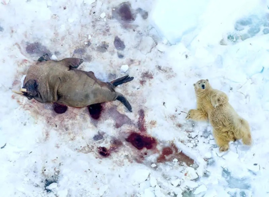 ۱. رتبه اول، «پس از غذا»، پال هرمنسن، نروژ، خرس قطبی پس از خوردن گرازماهی؛ طعمهای بسیار نادر.