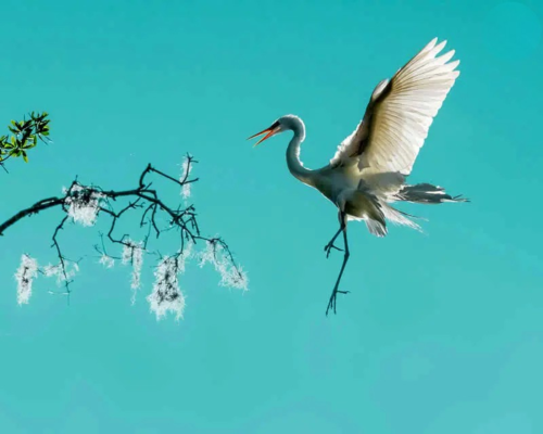 ۳. رتبه سوم، «فرود»، فنگچیانگ لیو، آمریکا، نشستن حواصیلهای بزرگ در نور صبحگاهیِ فصل زادآوری.