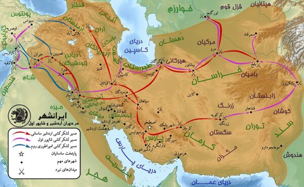 نقشهٔ لشکرکشی‌ها و نبردهای اردشیر بابکان و شاپور یکم