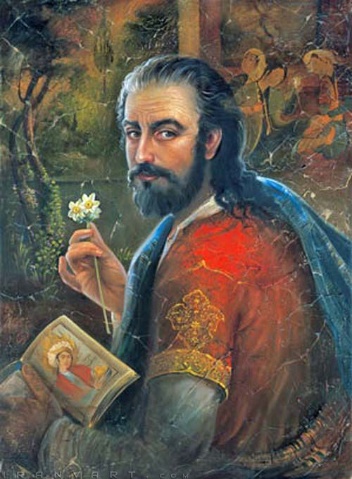 تصویر استفاده شدهٔ اثر حجت الله شکیباست و گویا با نام و به نیت چهرهٔ خواجه حافظ ارائه شده است.