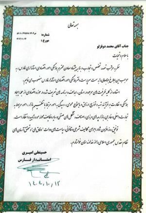 به گزارش اداره کل روابط عمومی و امور بینالملل استانداری فارس، در این حکم خطاب به دوقزلو آمده است: