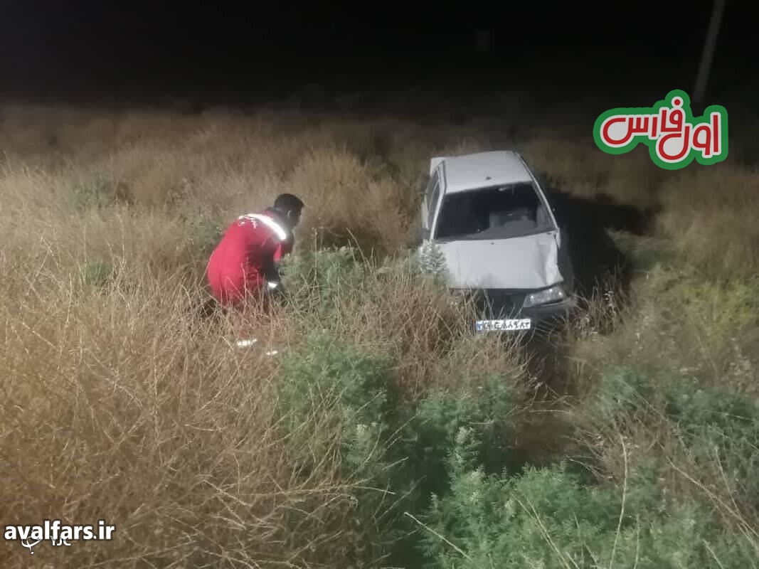 در این حادثه یک دستگاه خودروی سواری پس ازانحراف از مسیر اصلی واژگون میشود.