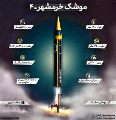 جدول مشخصات فنی و توانمندیهای موشک خرمشهر ۴ (خیبر)