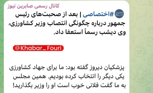 نوری قزلجه از وزارت جهاد کشاورزی استعفا داد؟