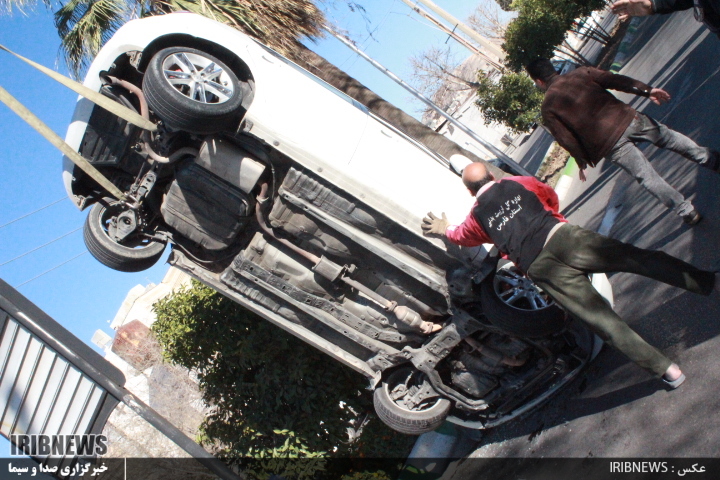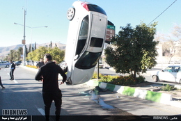 یک خودرو ظهر امروز بر اثر سرعت زیاد در بولوار گلستان شیراز واژگون شد