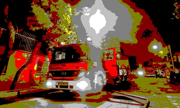 در این فیلم دود از این خودرو آتش نشانی خارج می شود اما شعله آتش وجود ندارد.