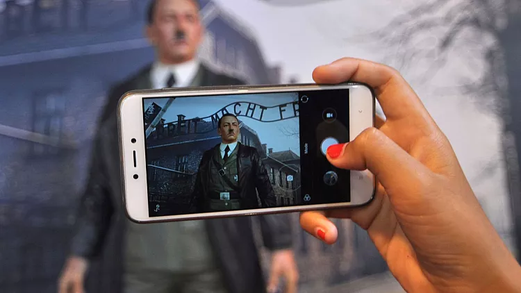بازدیدکنندهای در یک موزه در اندونزی از مجسمه موم هیتلر عکس میگیرد