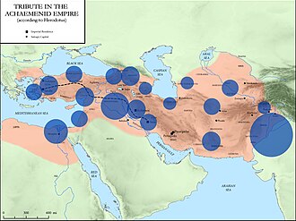 حجم خراج سالانه به ازای هر منطقه، در شاهنشاهی هخامنشی.