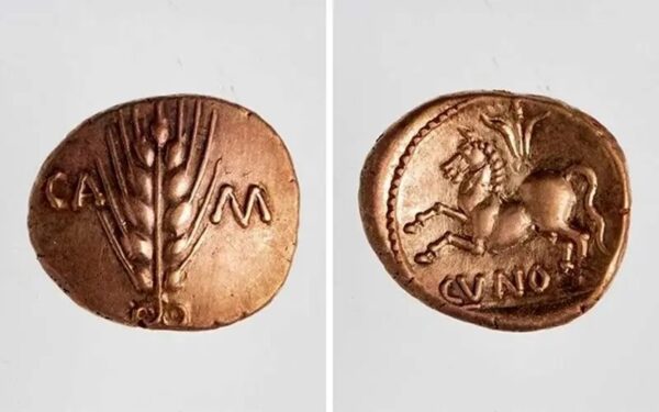 دامنهی گستردهی تاریخ سکههای کونوبلین، از جمله چهار سکه صادرشده پس از مرگ پادشاه، نشان میدهد این مجموعه یکباره از گردش خارج شده، همچون زمانی که نیروهای رومی سرزمین تازه فتحشده را غارت میکردند.