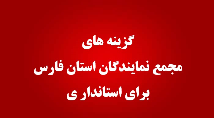 بر اساس این گزارش مجمع نمایندگان استان فارس به ترتیب آقایان محمدهادی ایمانیه (استاندار فعلی) ، محمود رضایی کوچی(معاونت فعلی امور عمرانی استانداری فارس ) و یدالله رحمانی را بعنوان گزینه بعنوان استاندار جدید فارس معرفی کردند.